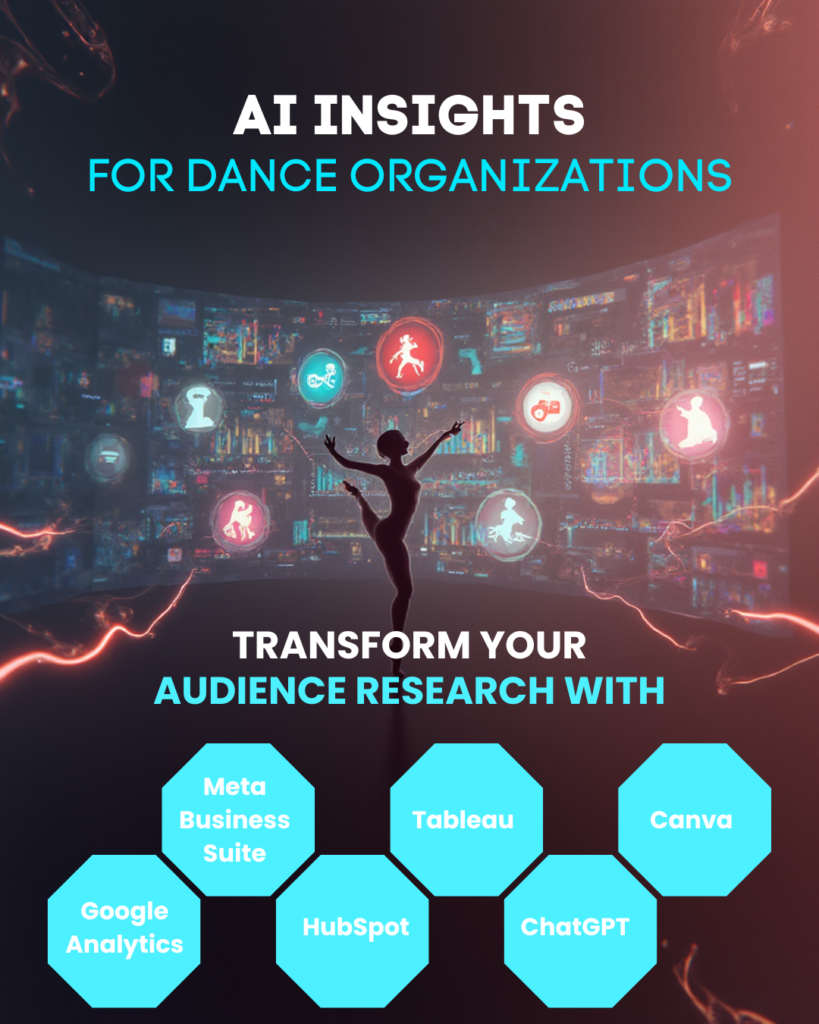 AI can be a powerful tool for audience research and insights, especially for dance managers, choreographers, and studio owners who need a clear understanding of their communities to market effectively. With the ability to analyze large amounts of data quickly, AI can reveal trends that would normally take hours to identify. Tools like Google Analytics, Meta Business Suite Insights, and HubSpot can automatically track audience behavior and highlight which styles, times, or age groups are most in demand. Even more advanced tools like Tableau, ChatGPT, or Canva’s AI insights can help interpret data and generate recommendations. For dance professionals, this means less time guessing and more time making informed decisions. AI ultimately transforms data into clear, actionable insights that support studio growth and connection.
